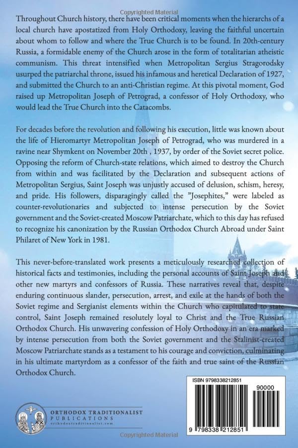 Book cover featuring an illustration of Saint Joseph of Petrograd with a snowy cityscape in the background.